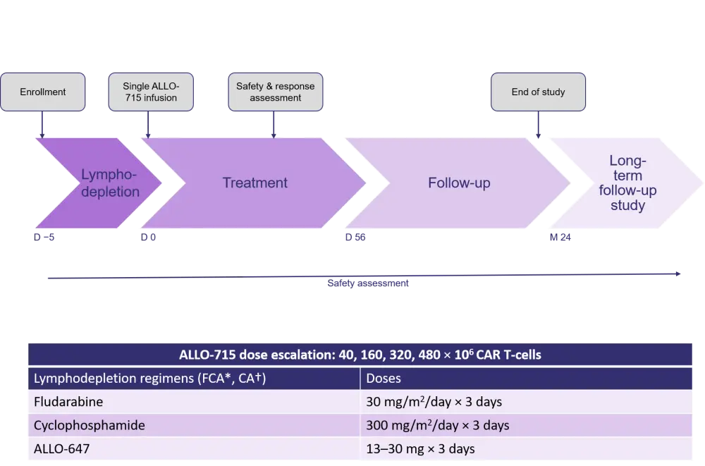 *FCA conditioning with fludarabine, cyclophosphamide and ALLO-647; †CA conditioning with cyclophosphamide and ALLO-647.
