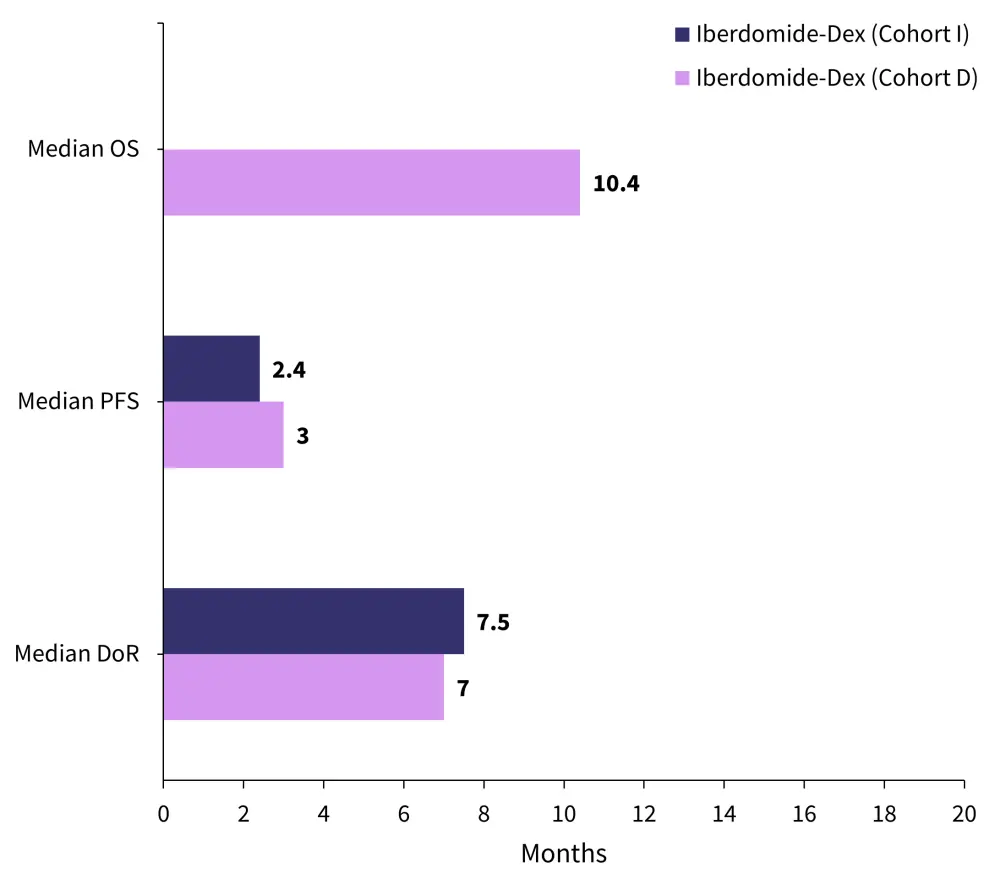 Figure 2. Median OS, PFS, and DoR observed with iberdomide-Dex in Cohort D and Cohort I*