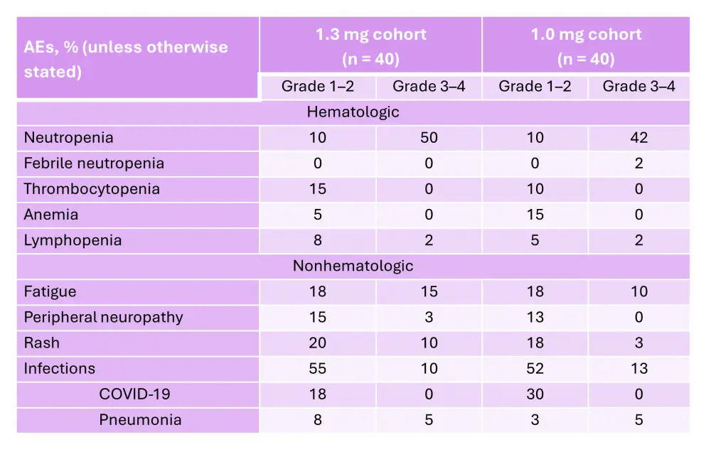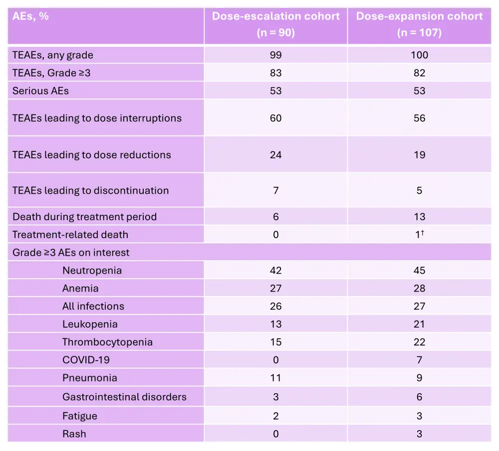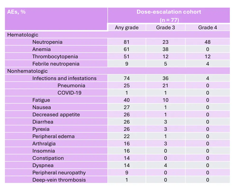 Table 3. AEs occurring in ≥20% of patients and AEs of interest in the dose-escalation cohort of the phase I/II CC-92480-MM-001 trial*