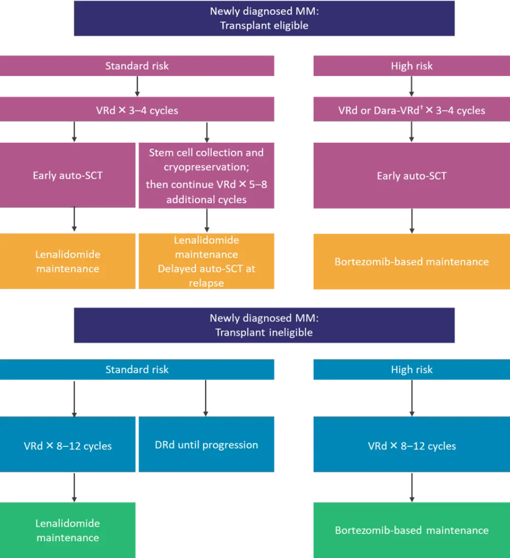 †Dara-VRd is recommended for high-risk patients, particularly those with double- or triple-hit MM.