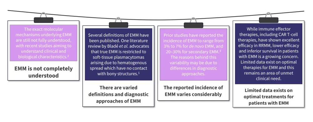 Despite treatment advances, EMM prognosis is poor and there remain several challenges in patient management (Figure 1). Further research is required to increase understanding of EMM and ultimately improve patient outcomes.