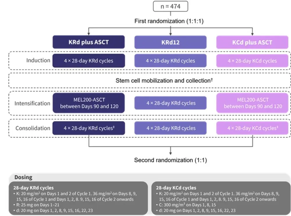 ASCT, autologous stem cell transplantation; C, cyclophosphamide; d, dexamethasone; K, carfilzomib; MEL200, 200 mg/m2 melphalan; R, lenalidomide; KRd12, 12 KRd cycles.