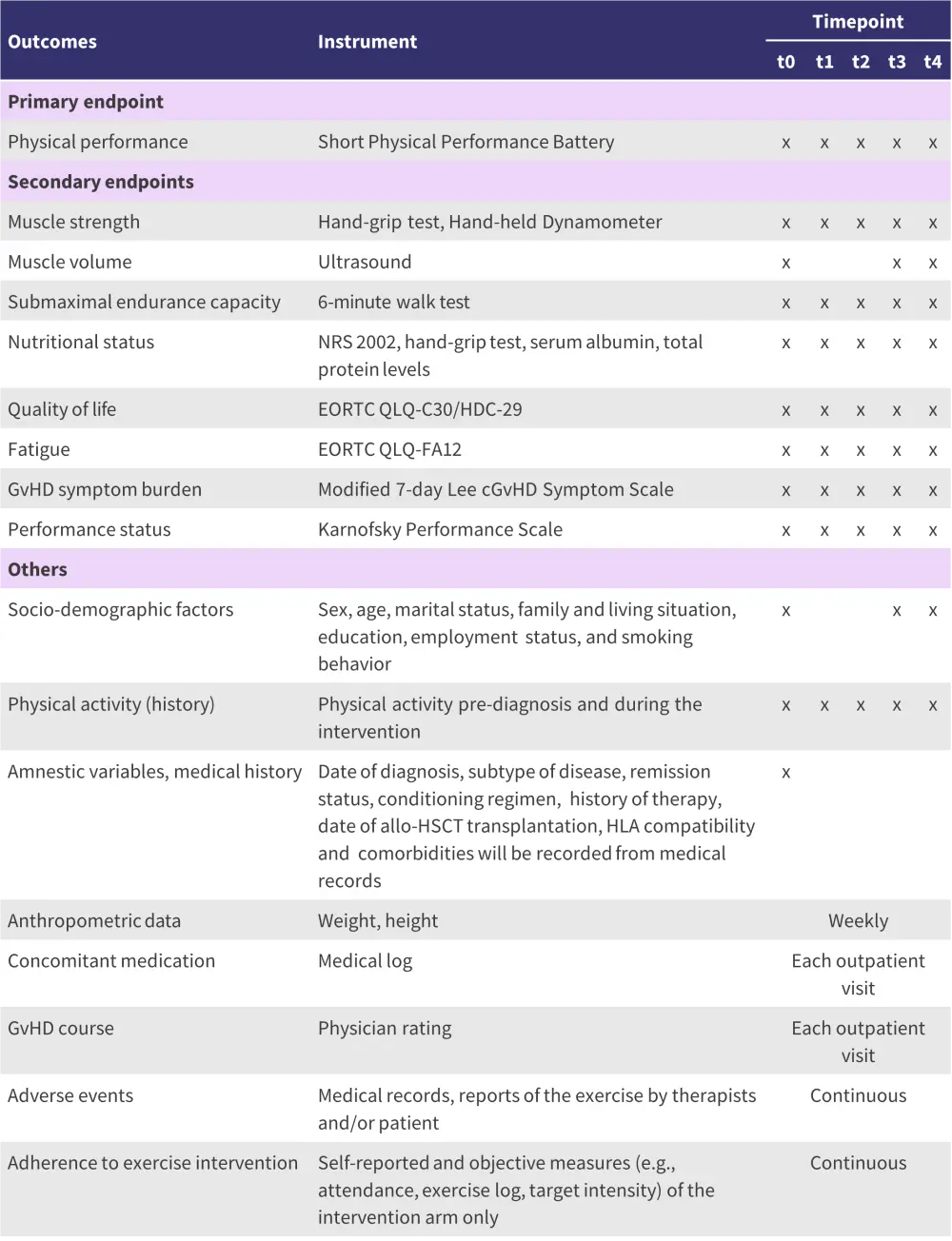 The authors hypothesize that, while the physical performance of both study arms should be improved after 24 weeks, the effect will be significantly greater in the experimental arm. It is anticipated that patients in the experimental arm will experience less fatigue, reduced GvHD symptom burden, improved quality of life, increased muscle strength, a better nutritional status as well as better endurance capacity.