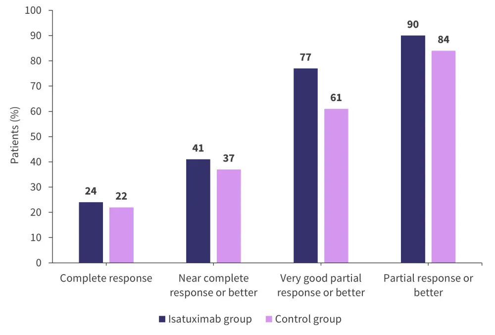 CR, complete response; Isa-KRd, isatuximab + carfilzomib + lenalidomide + dexamethasone; PR, partial response; sCR, stringent complete response; VGPR, very good partial response.