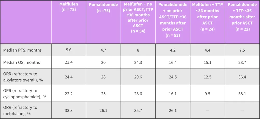 Figure 1. Response rates in patients refractory to prior alkylators and treated with melflufen or pomalidomide*