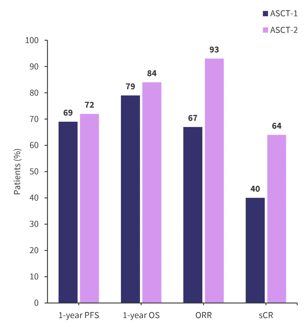 ASCT, autologous stem cell transplantation; ORR, overall response rate; OS, overall survival; PFS, progression-free survival; sCR, stringent complete response.