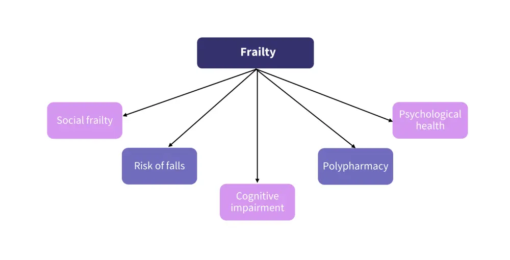 There are several additional considerations for the management of patients with increased frailty due to its association with a range of secondary risks (Figure 1).