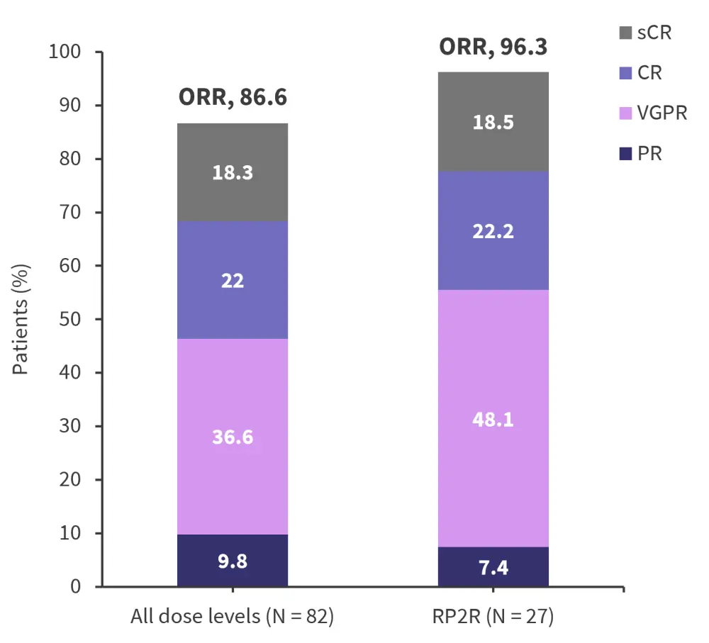 CR, complete response; ORR, overall response rate; PR, partial response; R2PR, recommended phase 2 regimen; sCR stringent complete response; VGPR, very good partial response.