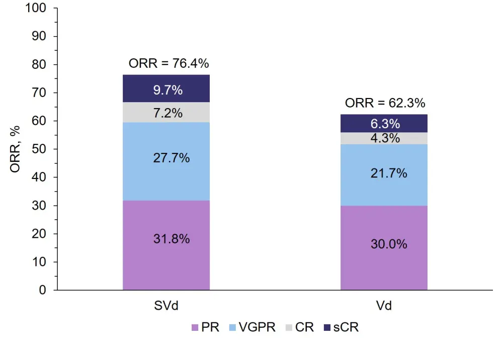 CR, complete response; ORR, overall response rate; PR, partial response; sCR, stringent complete response; SVd, selinexor + bortezomib + dexamethasone; Vd, bortezomib + dexamethasone; VGPR, very good partial response