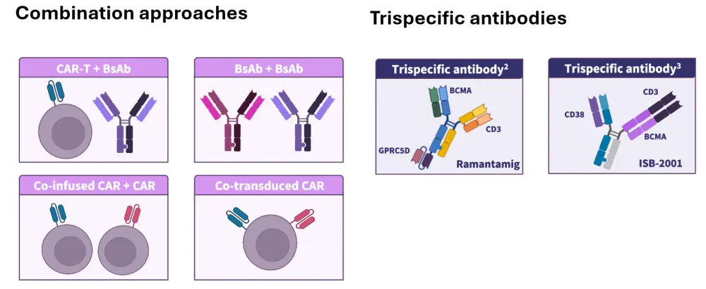 Numerous treatment combination strategies and novel dual-antigen targeting agents are being actively investigated for the treatment of MM, with the potential to increase efficacy, reduce duration of response, and mitigate resistance mechanisms.2–4