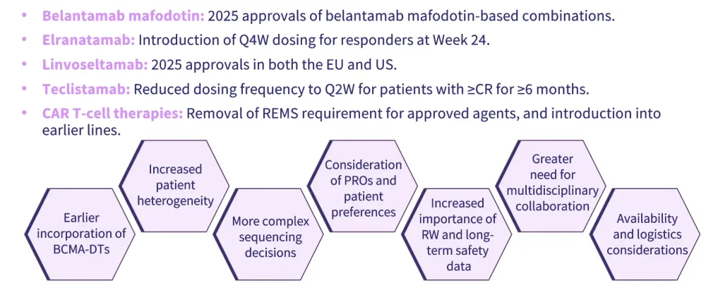 BCMA-directed therapies continue to evolve, with ongoing research refining how they are used across different stages of MM; shared decision-making remains central to treatment planning to ensure that therapy choices reflect both clinical considerations and individual patient preferences.