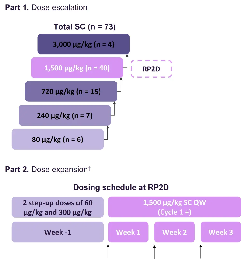 QW, once weekly; RP2D, recommended phase II dose; SC, subcutaneous.