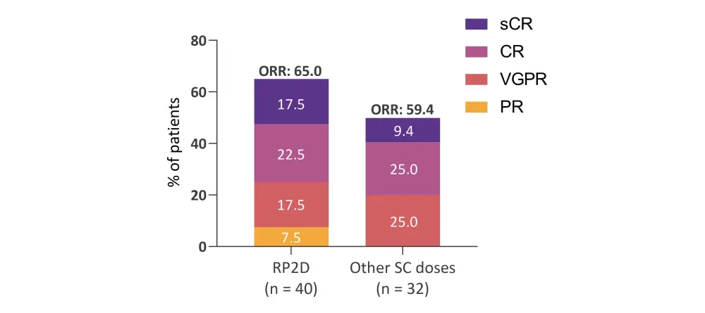 CR, complete response; ORR, overall response rate; PR, partial response; RP2D, recommended phase II dose; SC, subcutaneous; sCR, stringent complete response; VGPR, very good partial response.