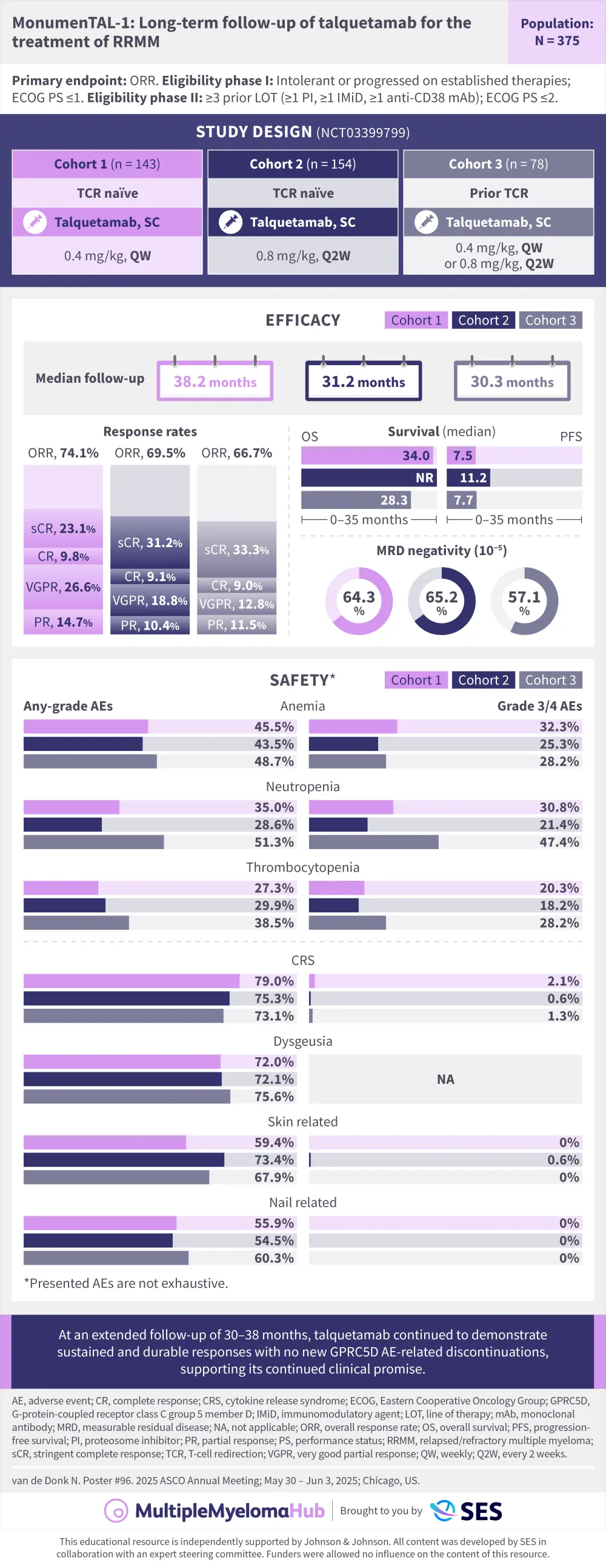 With longer-term follow-up, talquetamab continued to demonstrate deep, durable responses and a consistent safety profile across dosing schedules and patient subgroups, including those with prior TCR.
